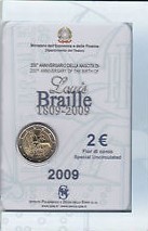 2 Euro Gedenkmünze Italien 2009 Louis Braille Folder