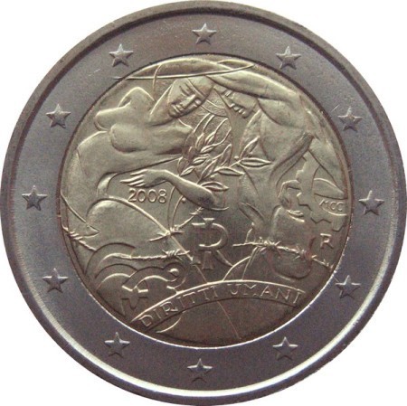 2 Euro Italien 2008 Diritti dell’uomo Bankfrisch