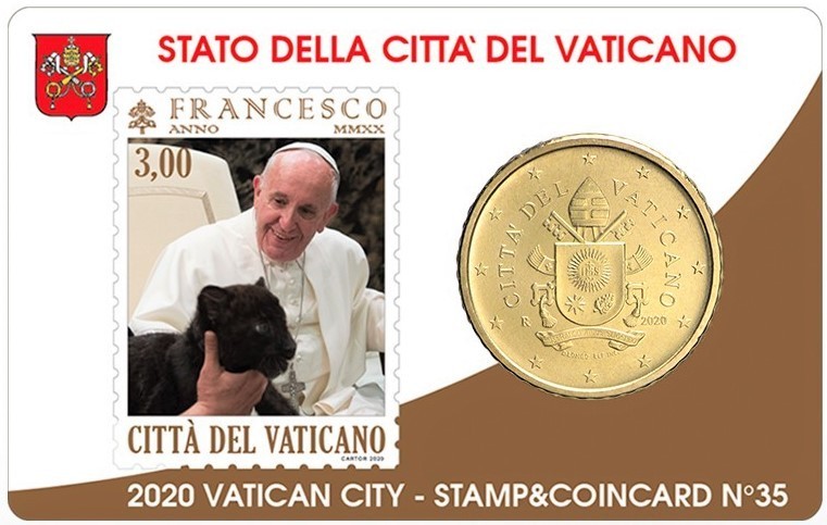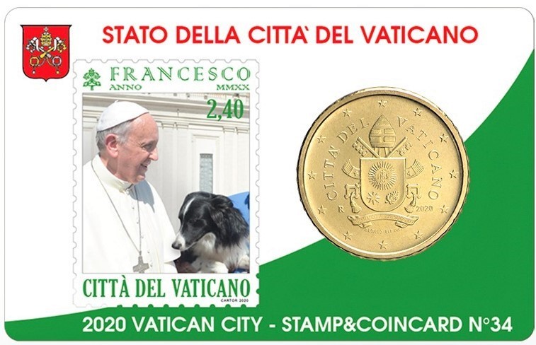 4 Vatikan Coincard 50 cent Jahr 2020 Papst Franziskus mit Tieren
