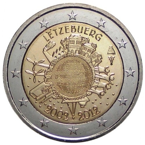 2 Euro Commemorative Coin Luxembourg 2012 10 Years Euro
