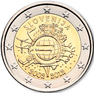 2 Euro Commemorative Coin Slovenia 2012 10 Years Euro