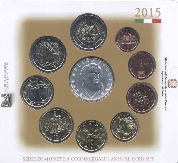 Bu Set Italy 2015 Euro 9 Coins + 5 Euro San Filippo Neri
