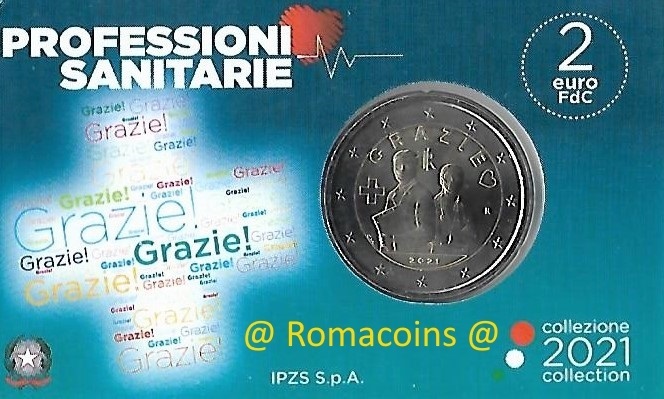 Coincard 2 Euro Coin Italy 2021 Health Care Professions