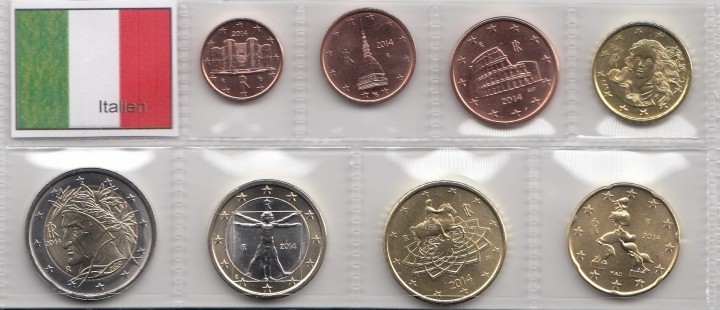 Complete Set Italy 2014 8 Coins 1 cc 2 Euro