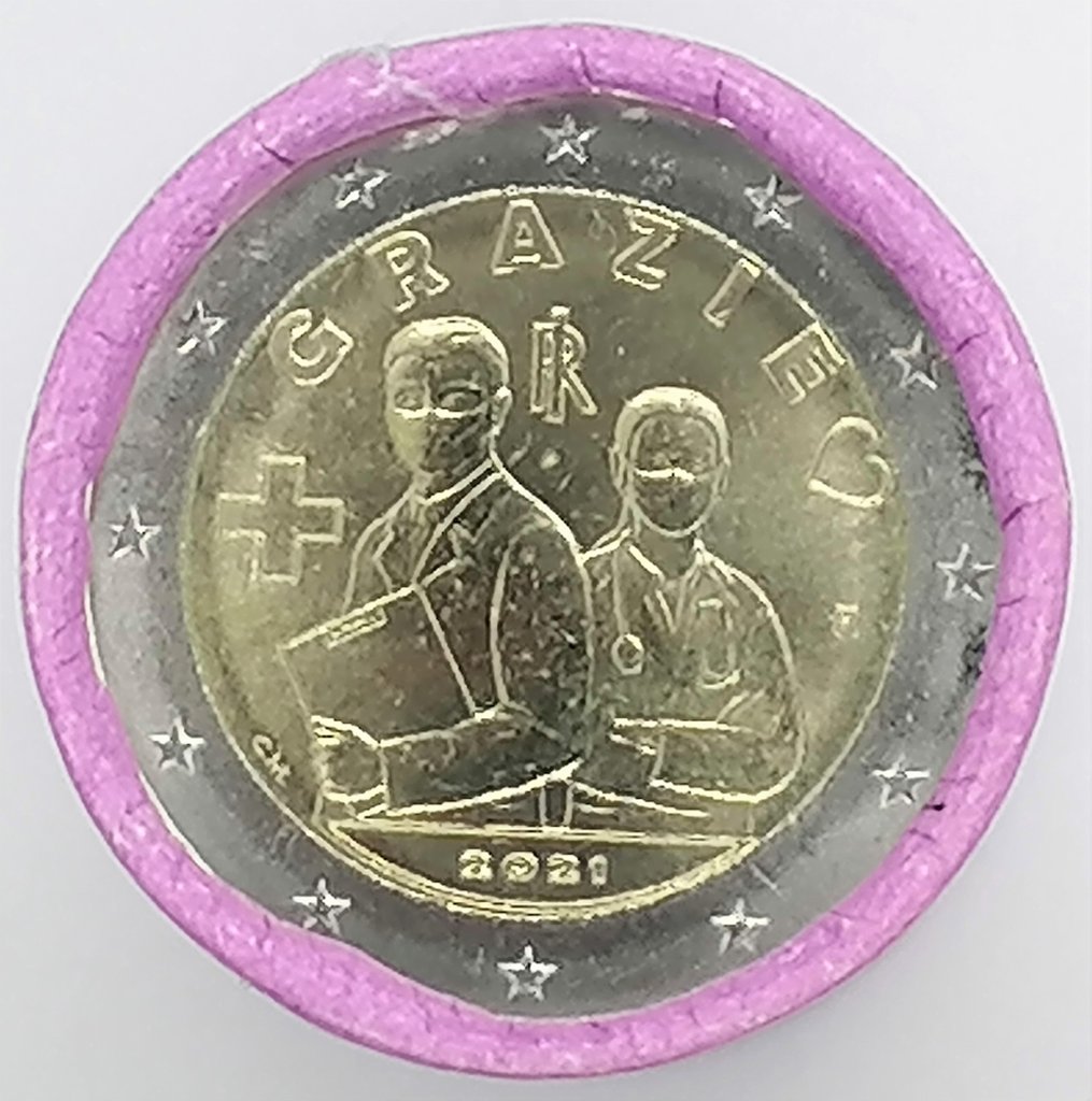Roll Coins Italy 2 Euro Comemorative 2021 “Grazie” Thanks