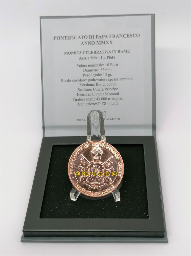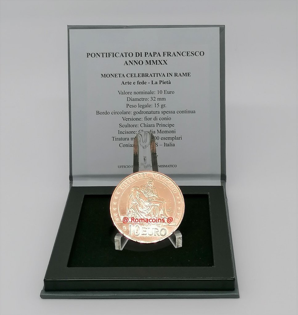 10 Euros Vaticano 2020 Piedad de Miguel Ángel en Cobre