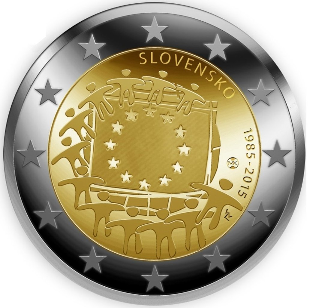 2 Euro Eslovaquia 2015 30 Años Bandera Europea Unc