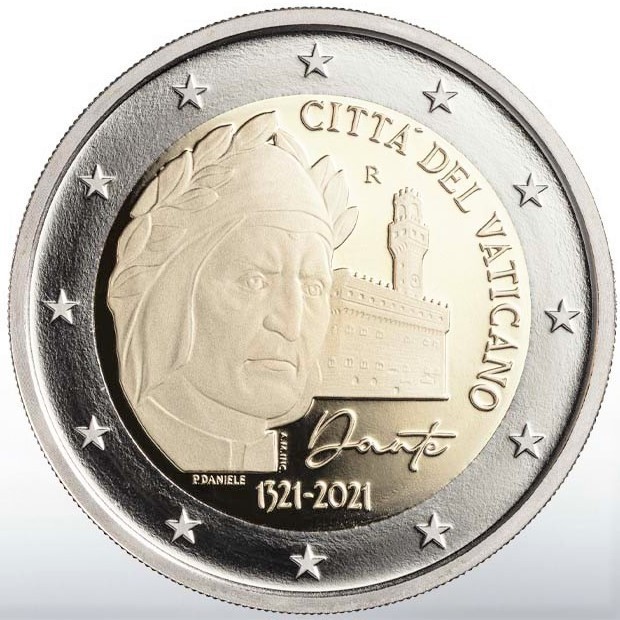 2 Euros Conmemorativos Vaticano 2021 Alighieri sin cartera