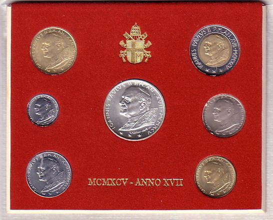 Cartera Vaticano 1995 Oficial Liras Juan Pablo II Fdc