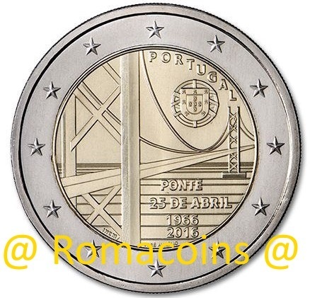 2 Euros Commémorative Portugal 2016 25 Avril Pont Pièce Unc