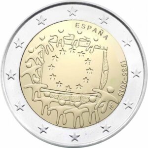 2 Euro Commemorativi Spagna 2015 30 Anni Bandiera Europea