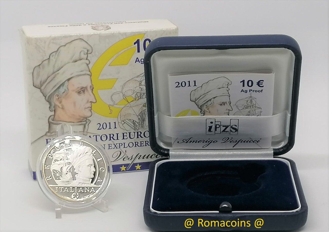 10 Euro Italia 2011 Amerigo Vespucci Proof Fondo Specchio