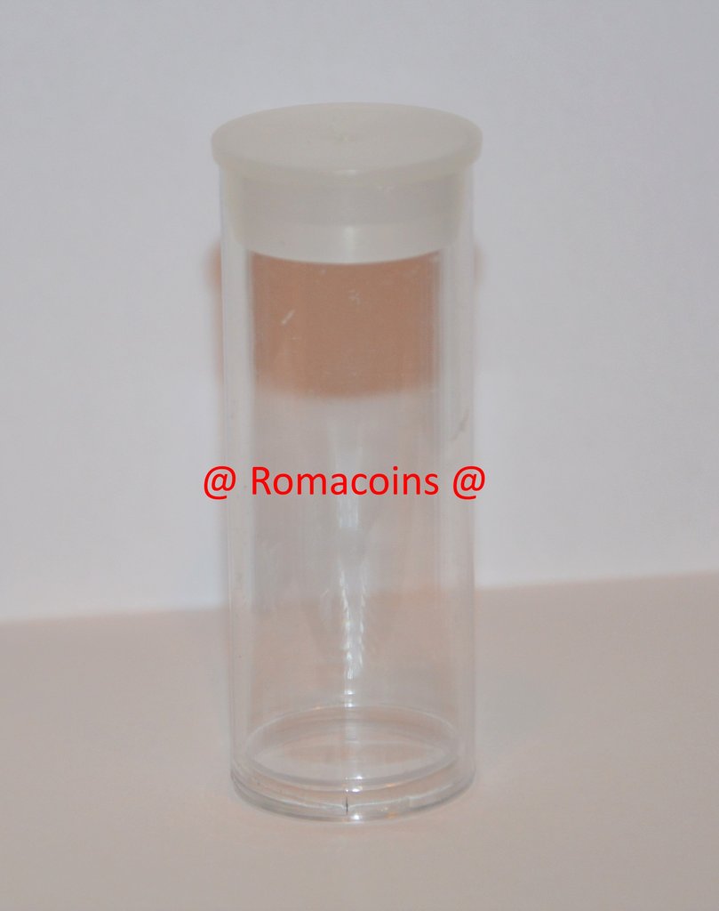 10 x Tubi in plastica trasparente, con coperchio trasparente. Ideali per la conservazione dei Rotolini da 2 Euro Commemorativi.