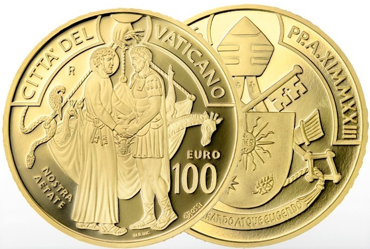 100 Euro Vaticano 2023 Oro Proof Fondo Specchio
