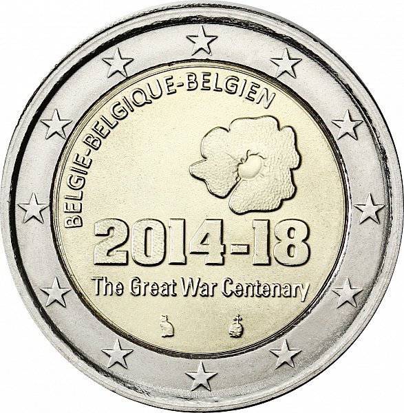 2 Euro Commemorativi Belgio 2014 Moneta Prima Guerra Mondiale