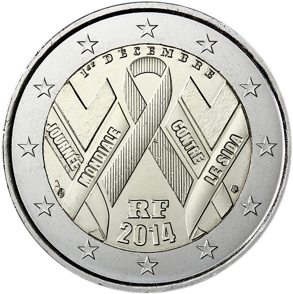 2 Euro Commemorativi Francia 2014 Moneta Aids