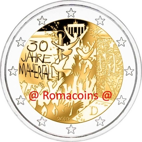 2 Euro Commemorativi Germania 2019 Muro di Berlino Zecca F
