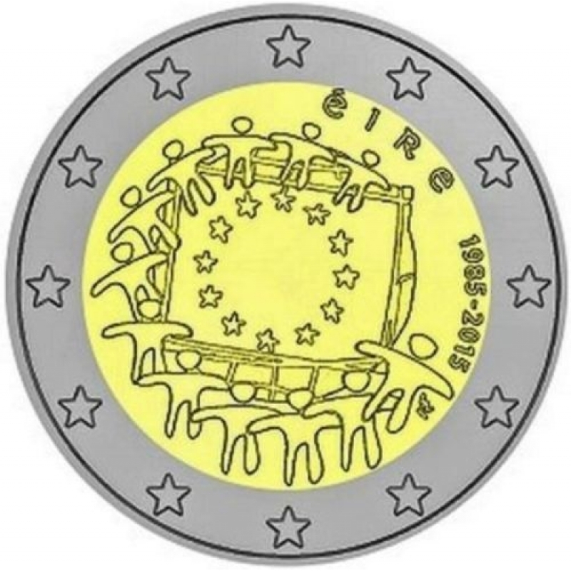 2 Euro Commemorativi Irlanda 2015 30 Anni Bandiera Europea