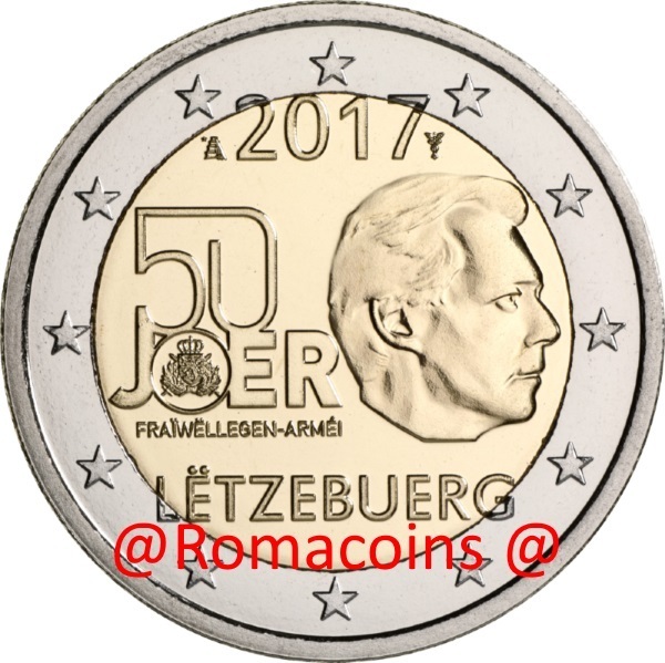 2 Euro Commemorativi Lussemburgo 2017 50 Anni Servizio Militare
