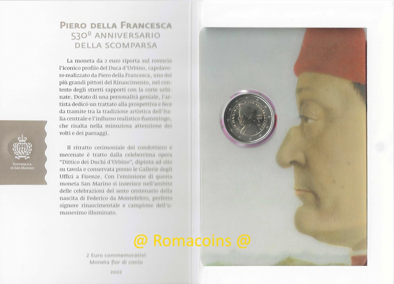 2 Euro Commemorativi San Marino 2022 Piero della Francesca Fdc