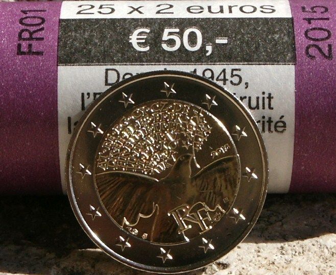 2 Euro Commemorativi Francia 2015 70 Anni Pace Europa Unc