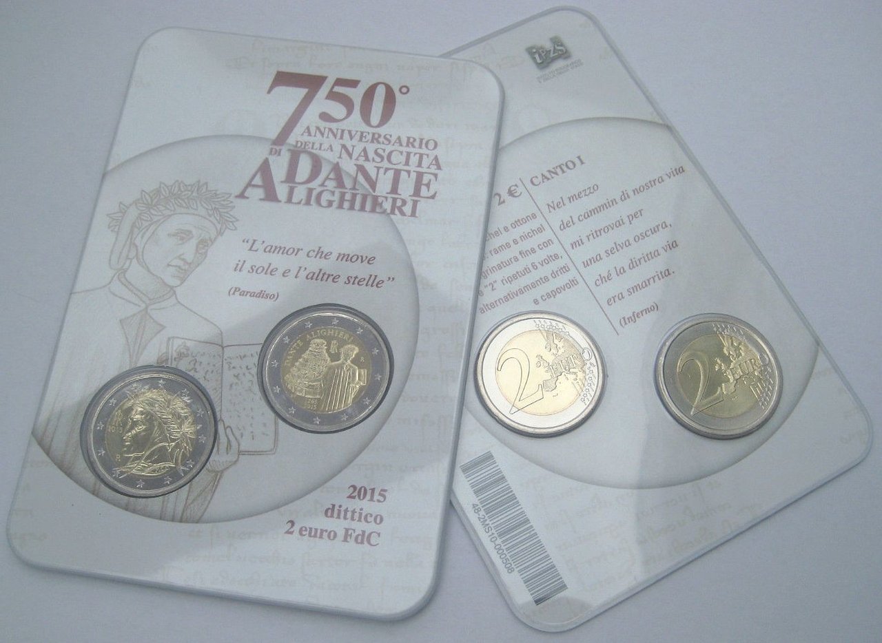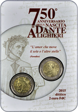 2 Euro Italia 2015 Dante Alighieri Blister Fior Di Conio Fdc