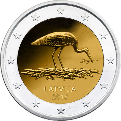 2 Euro Commemorativi Lettonia 2015 Cicogna Nera Unc