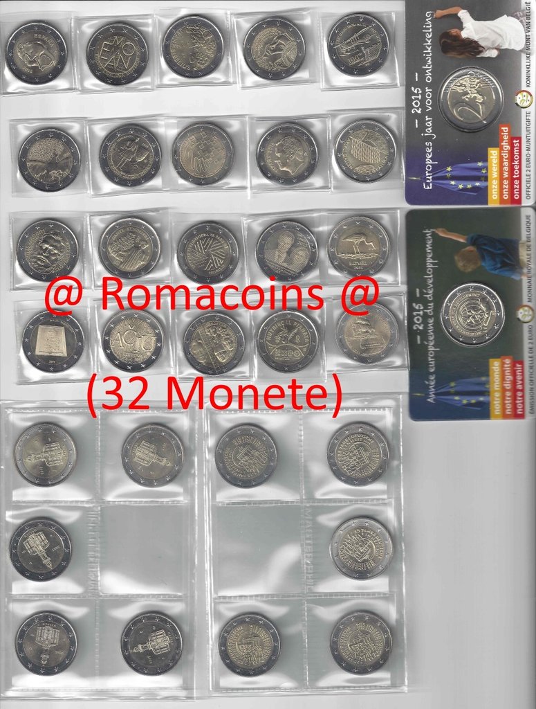 32 x 2 Euro Commemorativi 2015 Monete Collezione Completa