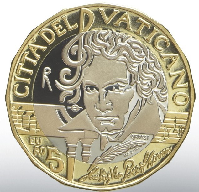5 Euro Vaticano 2020 Bimetallico Beethoven Moneta Proof
