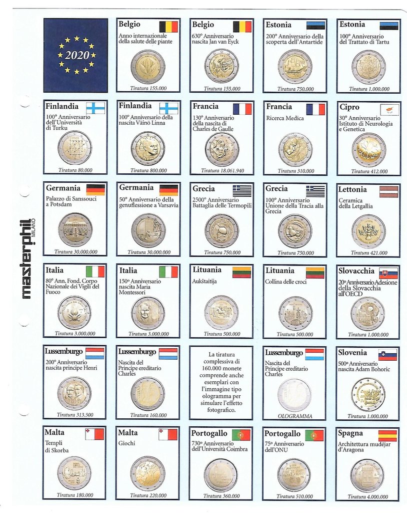 Aggiornamento per contenere tutte le monete da 2 Euro commemorative emesse nel 2020.