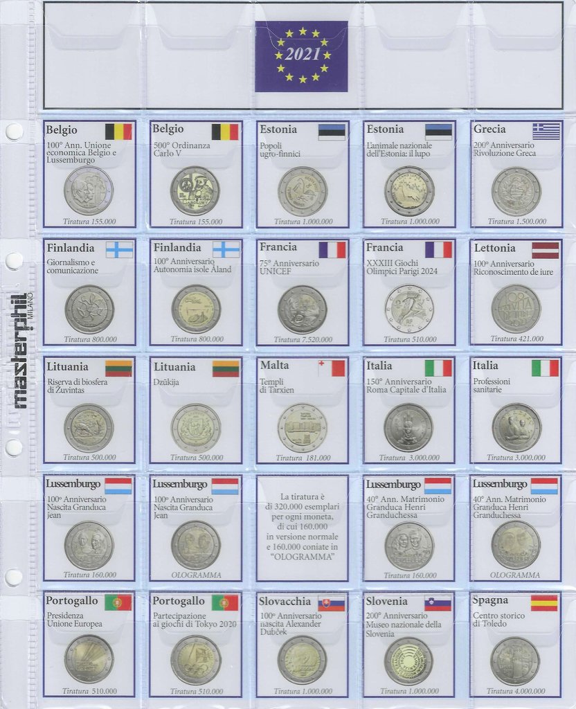 Aggiornamento per contenere tutte le monete da 2 Euro commemorative emesse nel 2021.