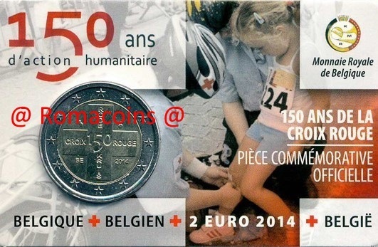 Coincard Belgio 2014 2 Euro Croce Rossa Lingua Casuale