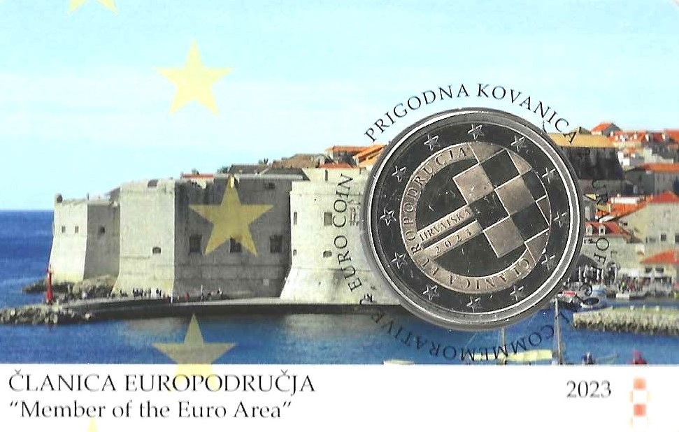 Coincard Croazia 2023 2 Euro Commemorativi Introduzione dell’Euro Fdc
