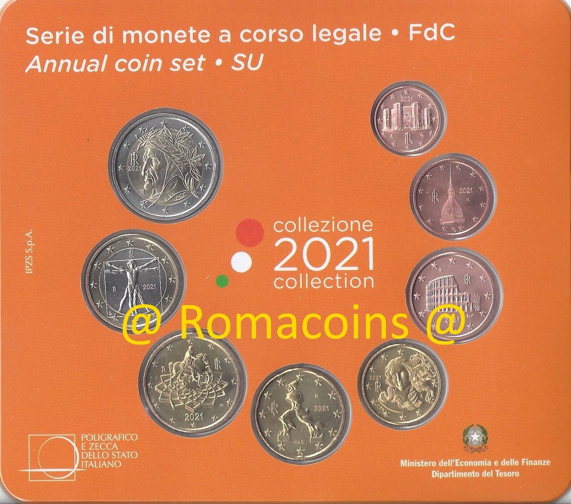 Divisionale Italia 2021 Fdc 8 Monete Serie Fior di Conio