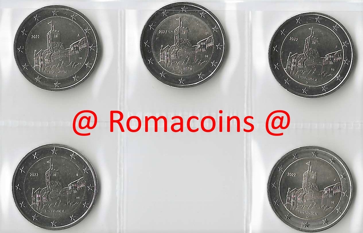 2 Euro Comemorativo Alemanha 2022 5 Casas da Moeda Thüringen