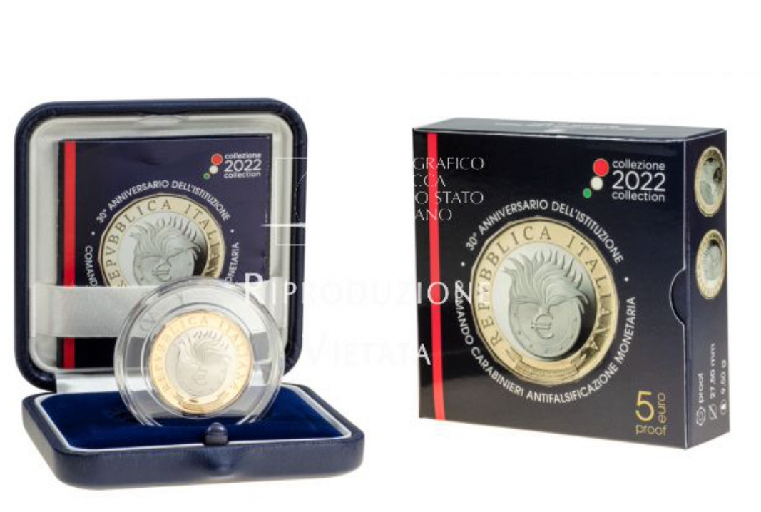 5 Euro Itália 2022 Caraninieri Anti-Falsificação Proof