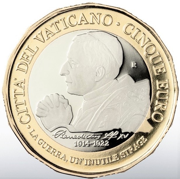 5 Euro Vaticano 2022 Moeda Bimetálica Papa Bento XV