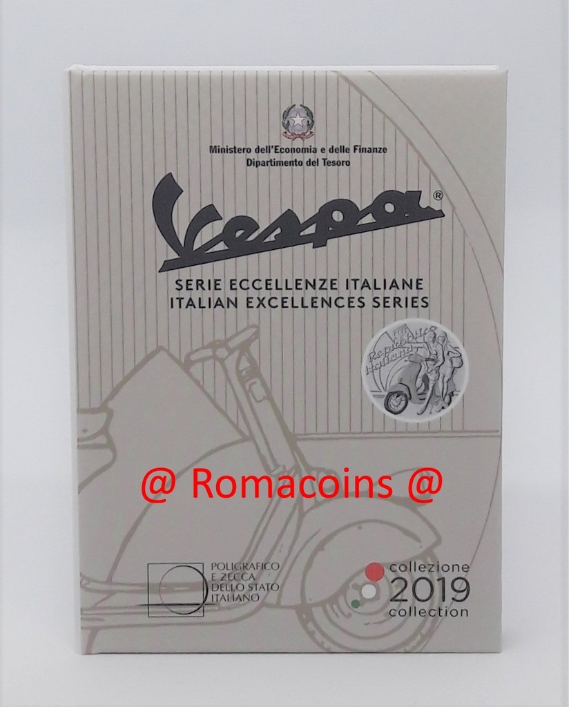 5 Euro Vespa Bianca 2019 Itália Moeda de Prata Bnc