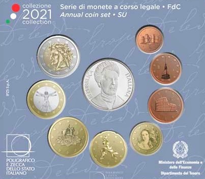 Carteira Itália 2021 Série 5 Euro Grazia Deledda Bnc
