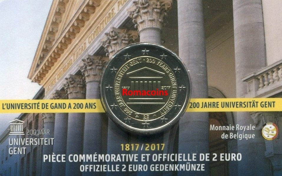 Moeda Bélgica 2017 2 Euro 200 Anos Universidade Gent Idioma aleatório