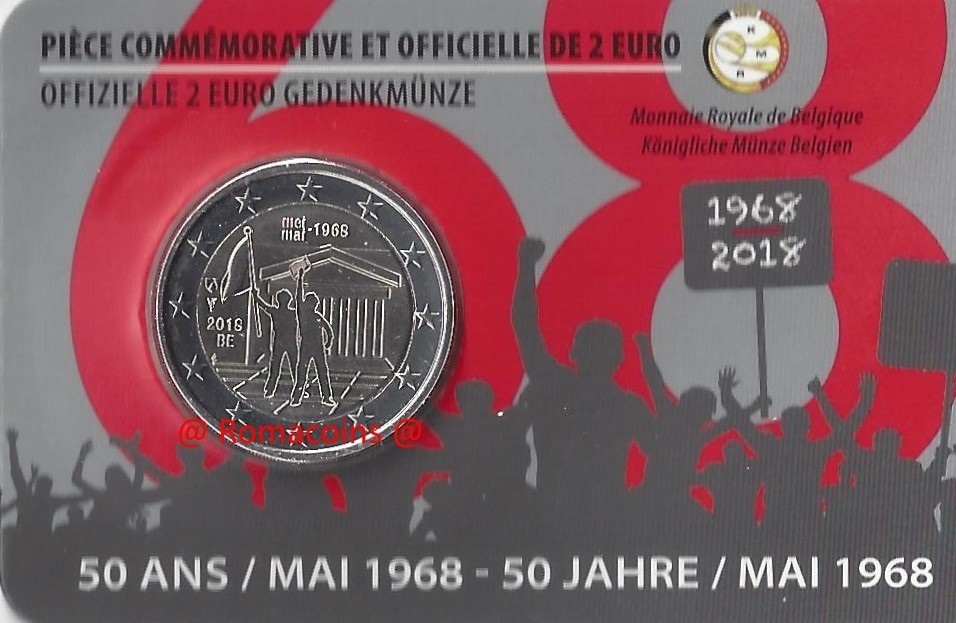Coincard Bélgica 2018 2 Euro Maio 1968 Idioma Aleatório
