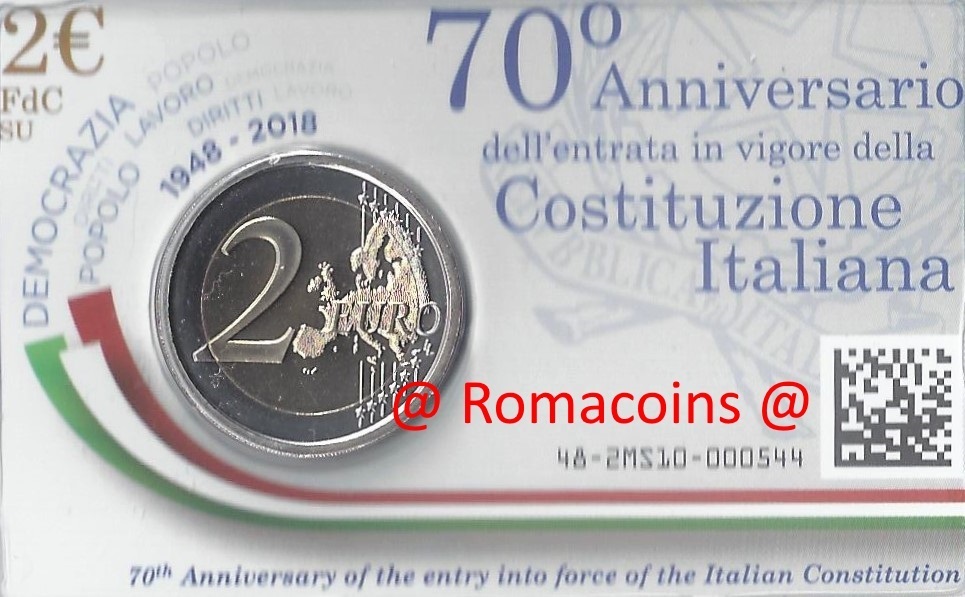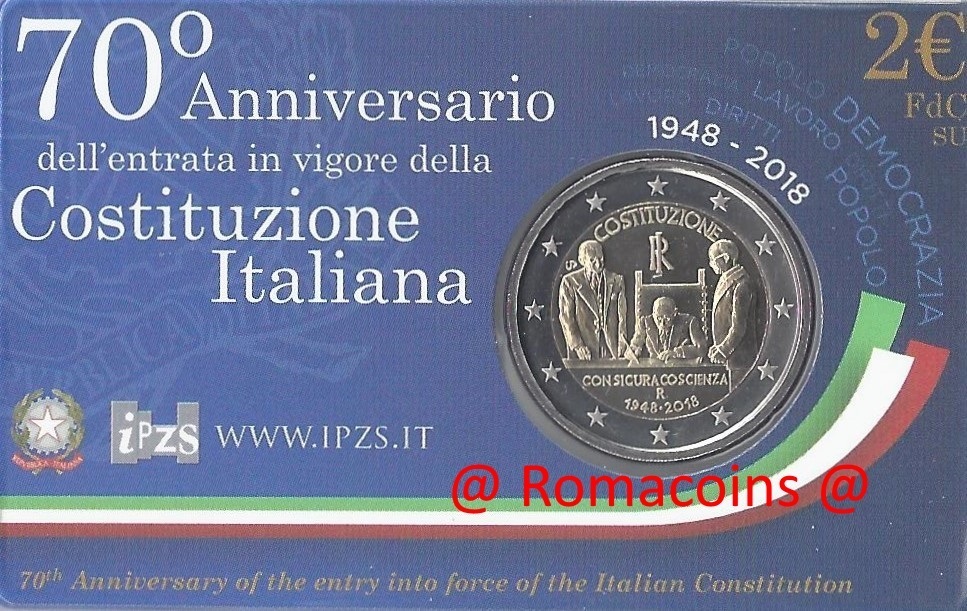 Moeda Itália 2018 70 Anos Constituição 2 Euro Bnc