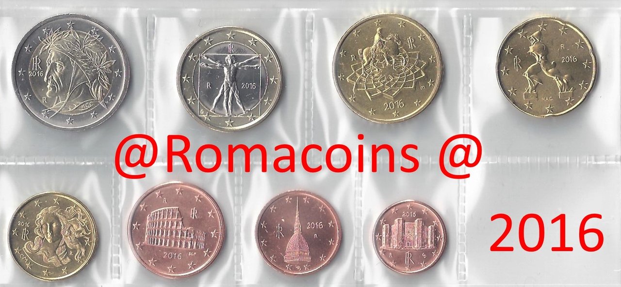 Série Completa Itália 2016 8 Moedas 1 cc – 2 Euro